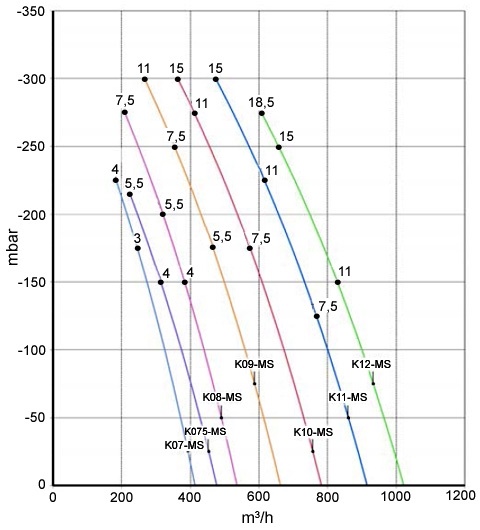 - Hz m3/h mbar kW V min-1 dB (A) kg